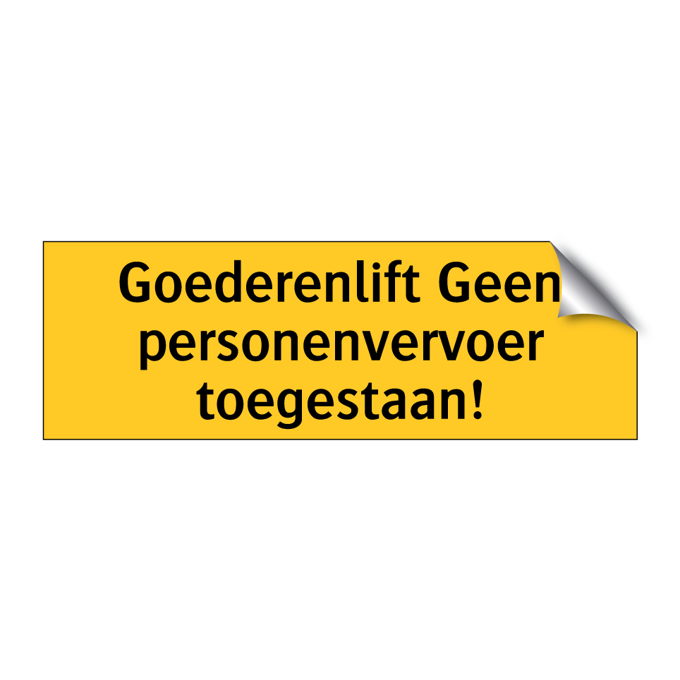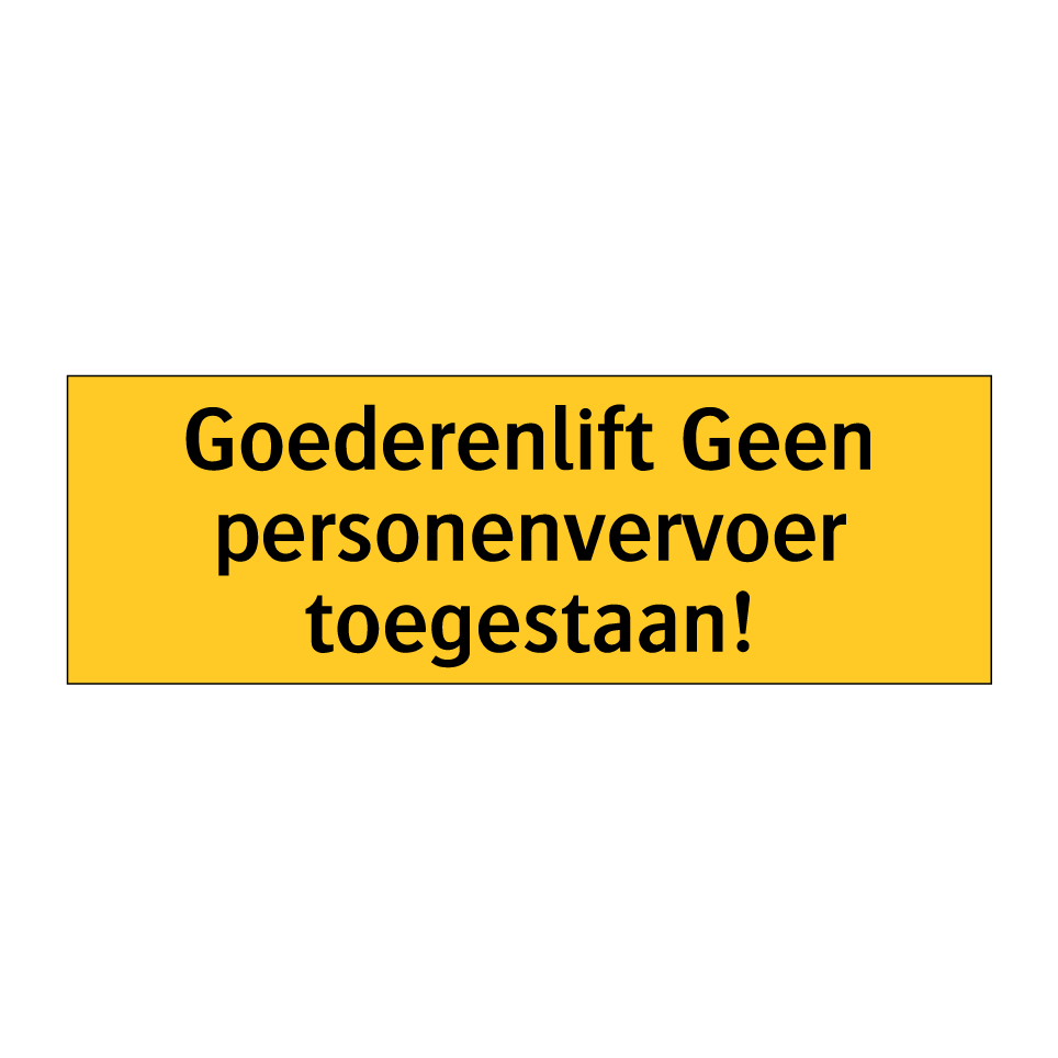 Deze waarschuwingsbord is essentieel voor het waarborgen van de veiligheid in omgevingen waar goederenliften worden gebruikt. Het bord geeft duidelijk aan dat de lift uitsluitend bedoeld is voor het transport van goederen en dat personenvervoer niet is toegestaan. Plaats deze waarschuwingsbord bij de ingang van de goederenlift, in magazijnen, fabrieken, en andere industriële omgevingen om ongelukken te voorkomen en de veiligheid van werknemers te garanderen. Door de opvallende gele achtergrond en zwarte tekst is de boodschap goed zichtbaar en onmiskenbaar. Zorg ervoor dat iedereen op de hoogte is van de regels met deze duidelijke en effectieve waarschuwingsbord.