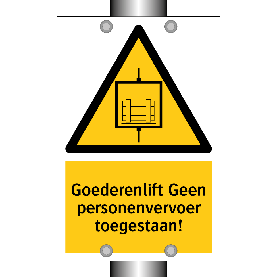 Waarschuwingsbord met de tekst Goederenlift Geen personenvervoer toegestaan!