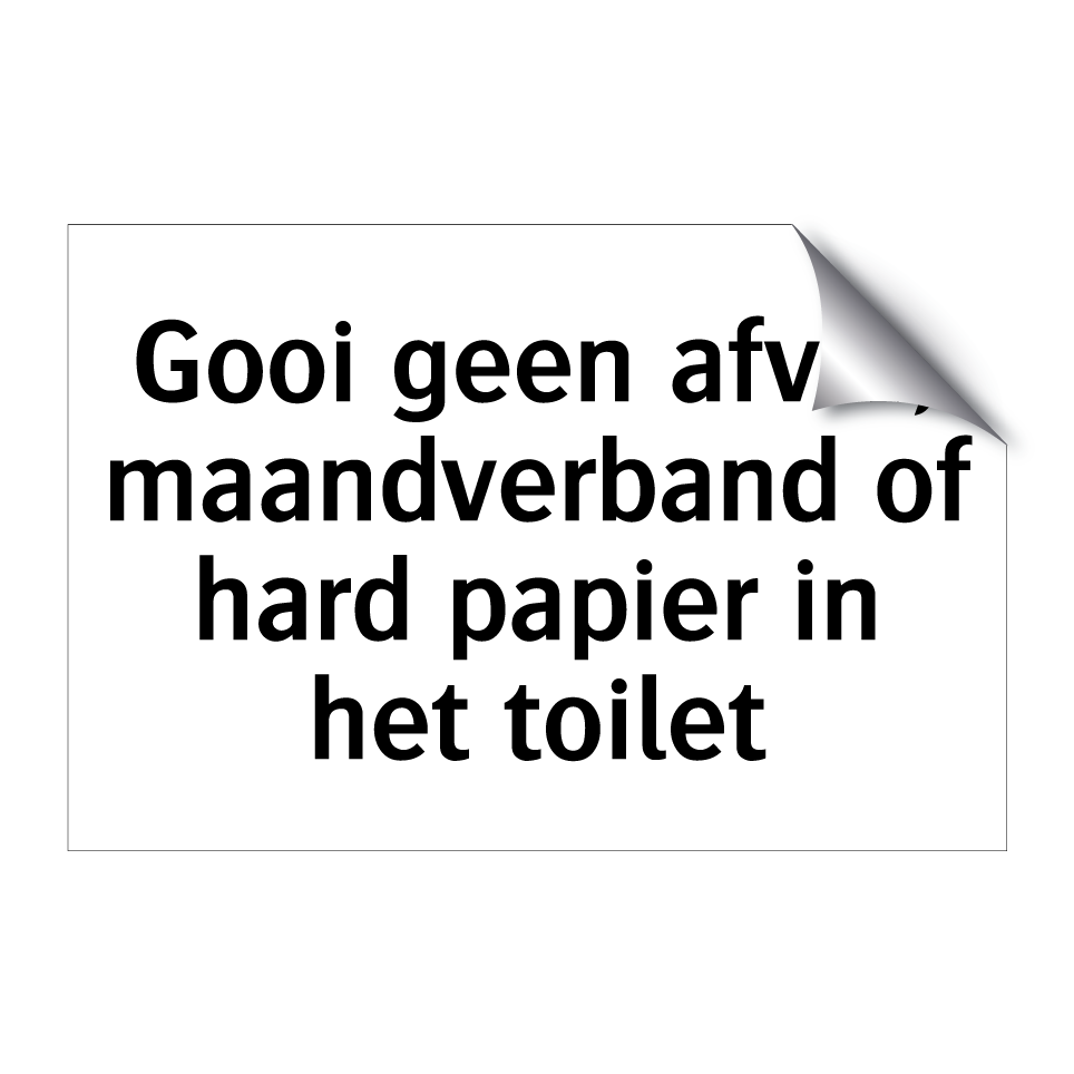 Verbodsbord met de tekst Gooi geen afval, maandverband of hard papier in het toilet