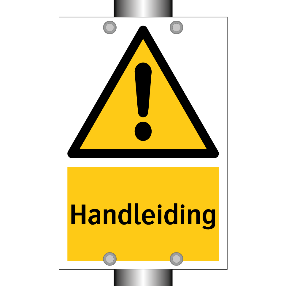 Waarschuwingsbord met de tekst Handleiding