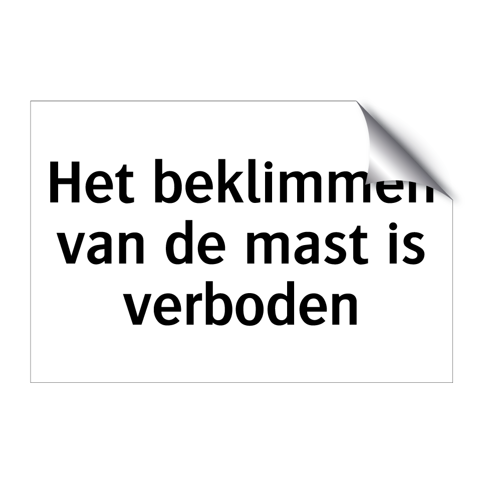 Verbodsbord met de tekst Het beklimmen van de mast is verboden