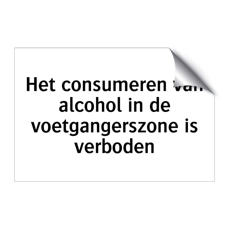 Verbodsbord met de tekst Het consumeren van alcohol in de voetgangerszone is verboden