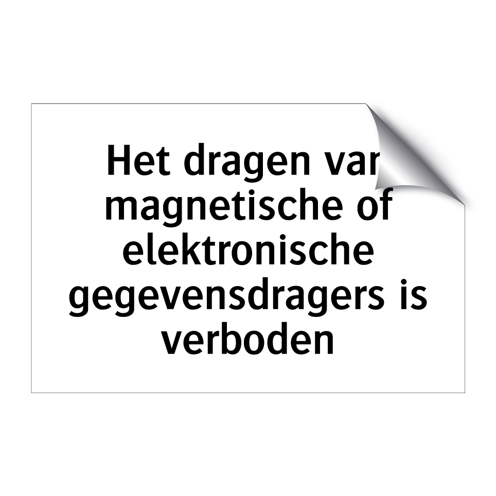 Verbodsbord met de tekst Het dragen van magnetische of elektronische gegevensdragers is verboden