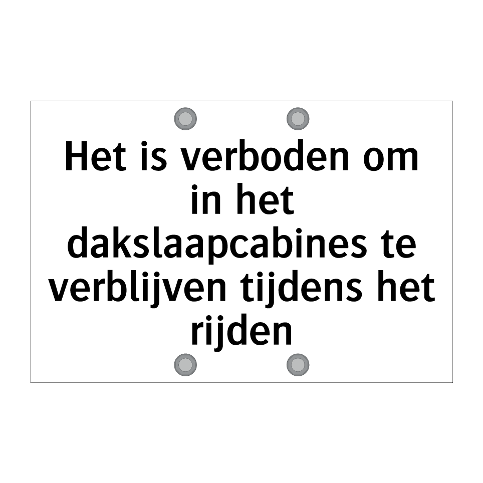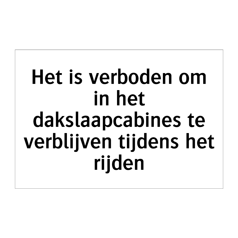 Verbodsbord met de tekst Het is verboden om in het dakslaapcabines te verblijven tijdens het rijden