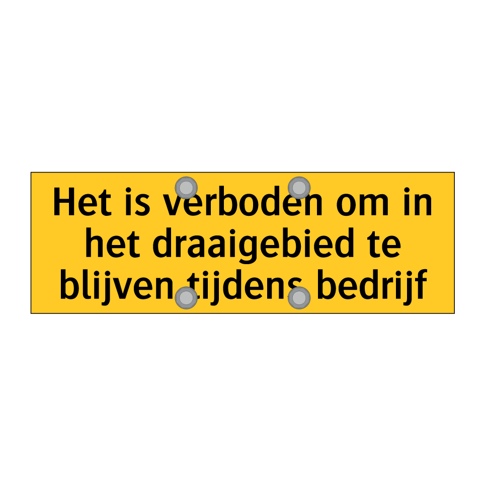 Waarschuwingsbord met de tekst Het is verboden om in het draaigebied te blijven tijdens bedrijf