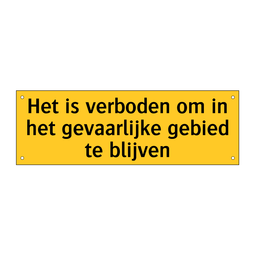 Waarschuwingsbord met de tekst Het is verboden om in het gevaarlijke gebied te blijven