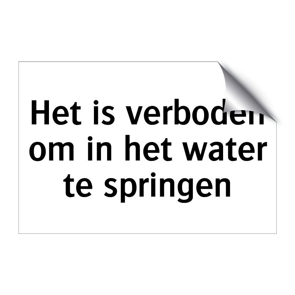 Verbodsbord met de tekst Het is verboden om in het water te springen