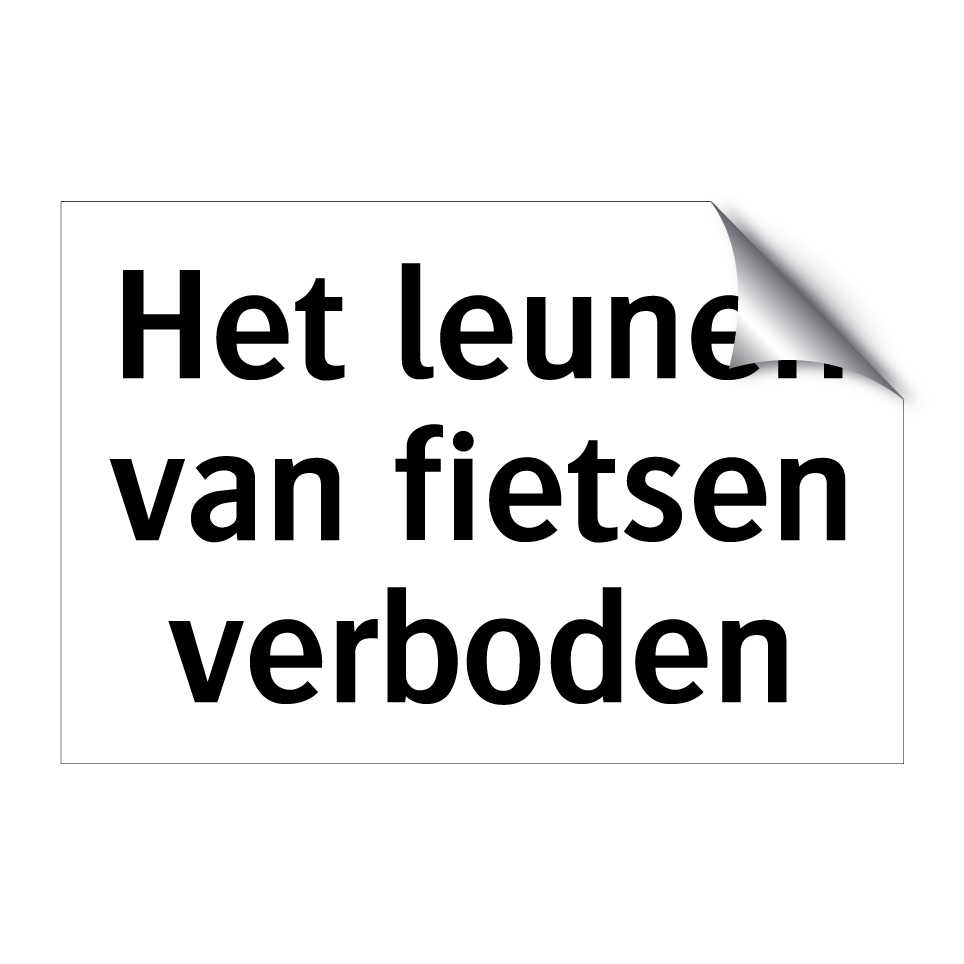 Verbodsbord met de tekst Het leunen van fietsen verboden