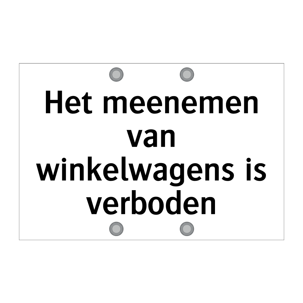 Verbodsbord met de tekst Het meenemen van winkelwagens is verboden