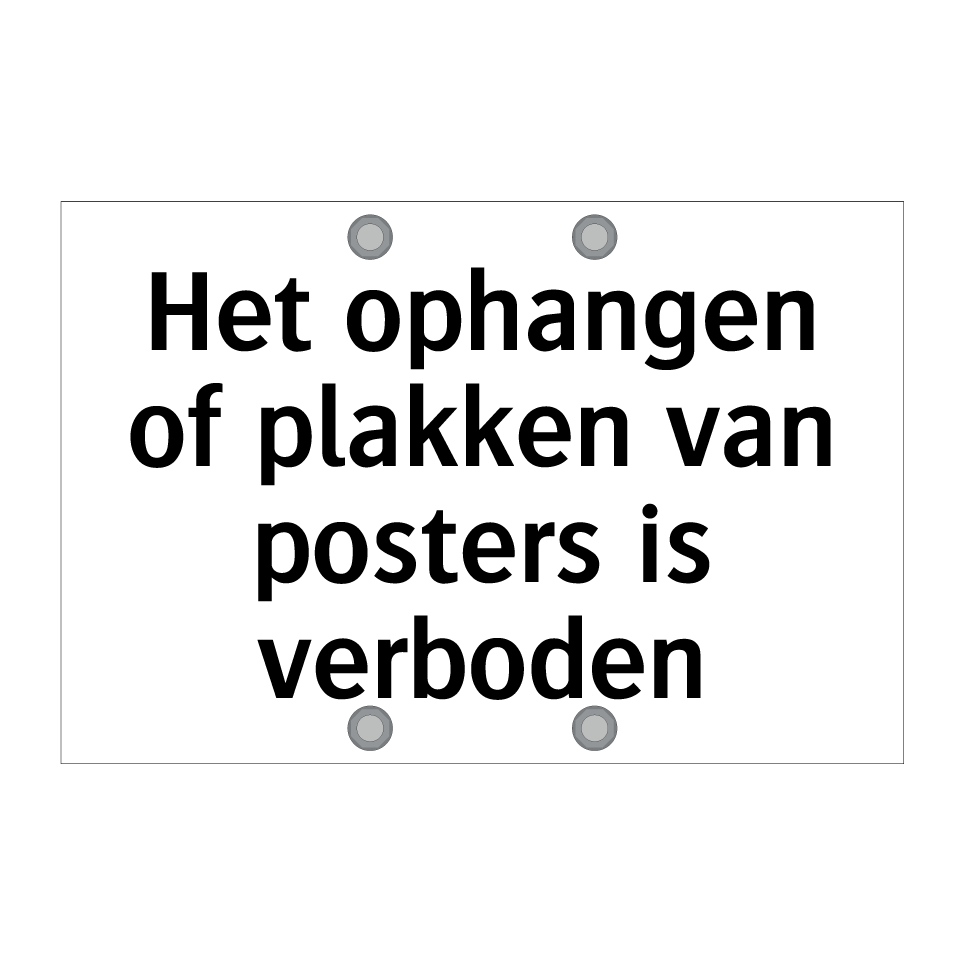 Verbodsbord met de tekst Het ophangen of plakken van posters is verboden