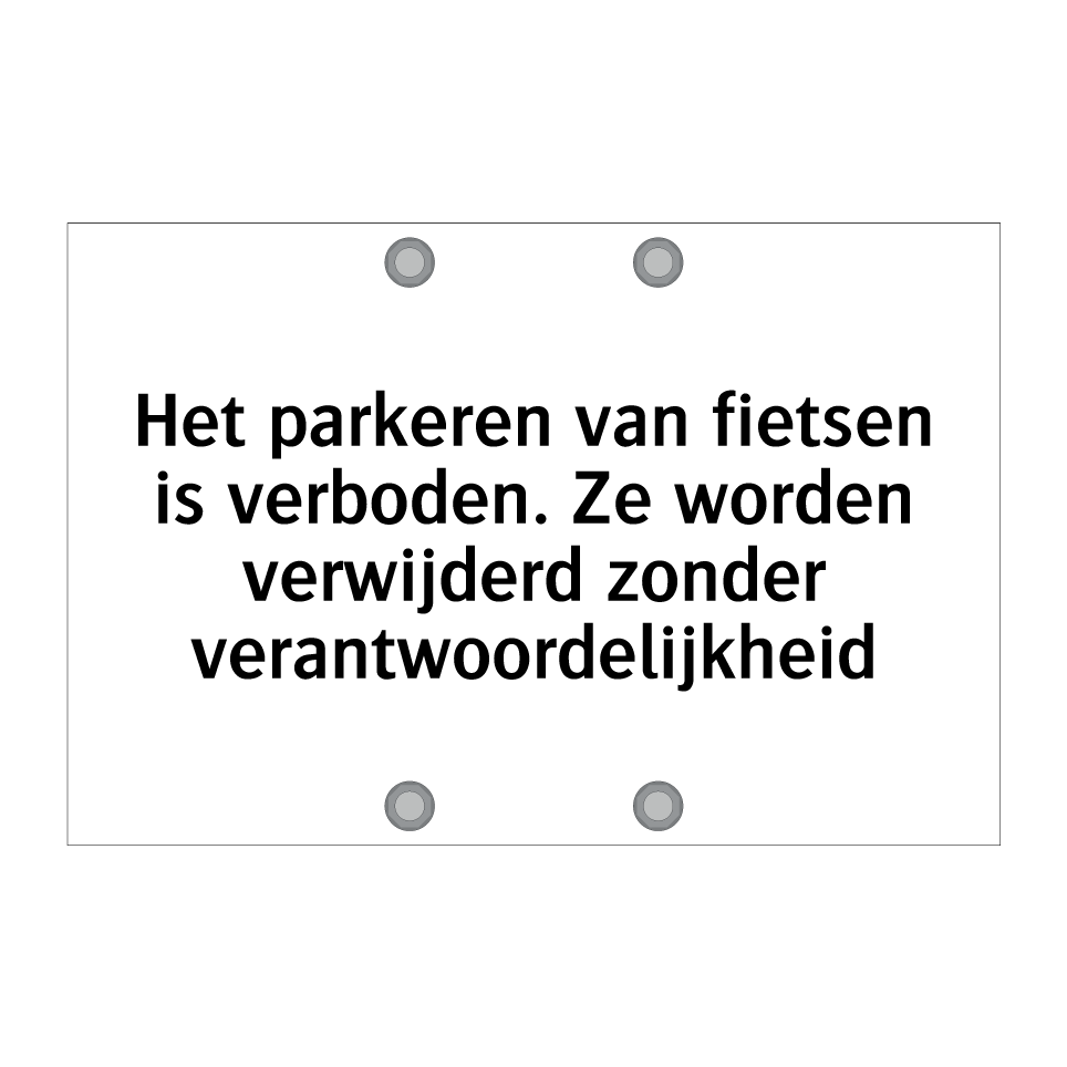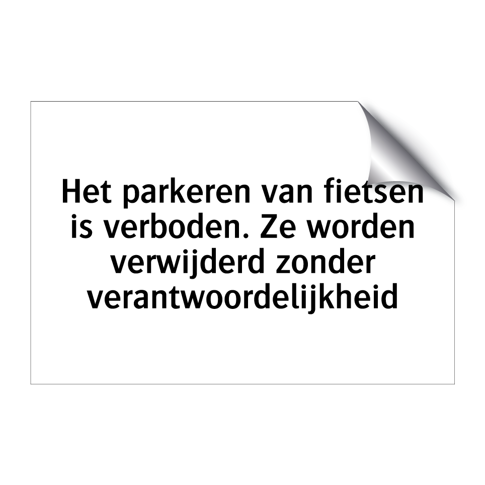 Verbodsbord met de tekst Het parkeren van fietsen is verboden. Ze worden verwijderd zonder verantwoordelijkheid