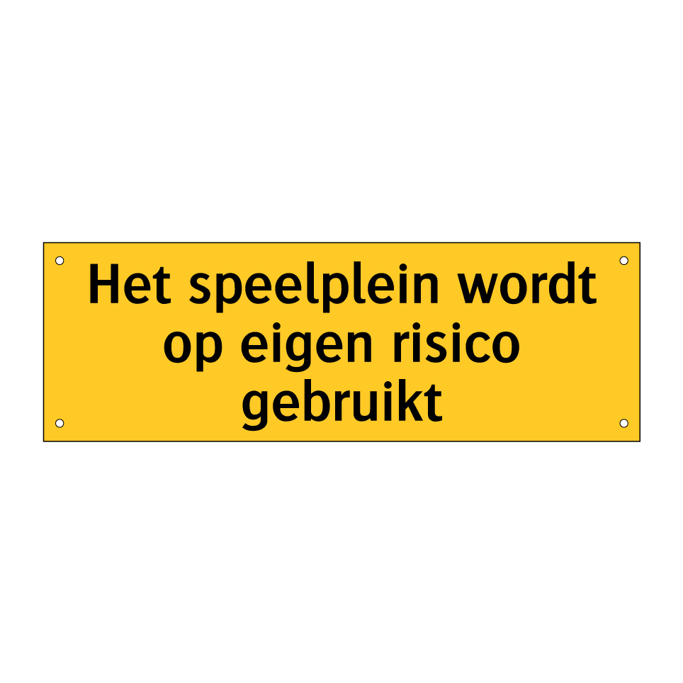 Deze waarschuwingsbord is essentieel voor speelpleinen en recreatiegebieden. Het informeert bezoekers dat het gebruik van het speelterrein op eigen risico is, wat helpt om bewustzijn te creëren over mogelijke gevaren. Plaats deze bord op goed zichtbare locaties zoals ingangen van speeltuinen, parken en recreatiezones. Door de opvallende gele achtergrond en zwarte tekst trekt het direct de aandacht van ouders en kinderen. Dit waarschuwingsbord is een onmisbaar onderdeel van de veiligheidsmaatregelen en draagt bij aan een verantwoord gebruik van speelvoorzieningen. Zorg voor een veilige omgeving door deze duidelijke en effectieve waarschuwing te plaatsen.