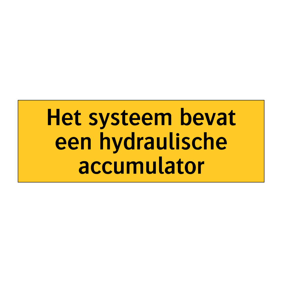 Waarschuwingsbord met de tekst Het systeem bevat een hydraulische accumulator