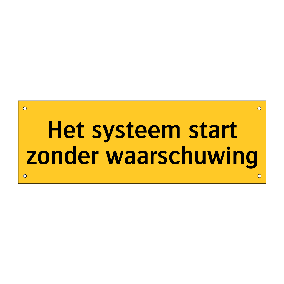 Waarschuwingsbord met de tekst Het systeem start zonder waarschuwing