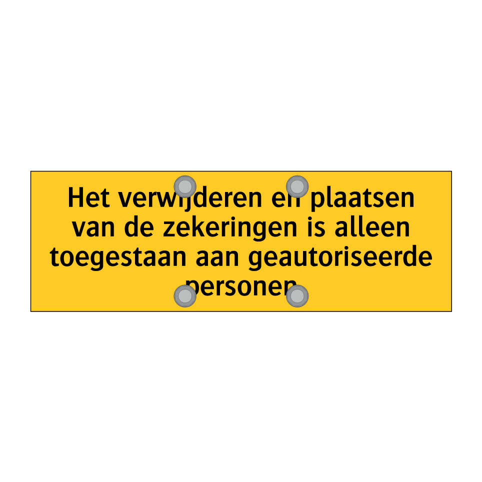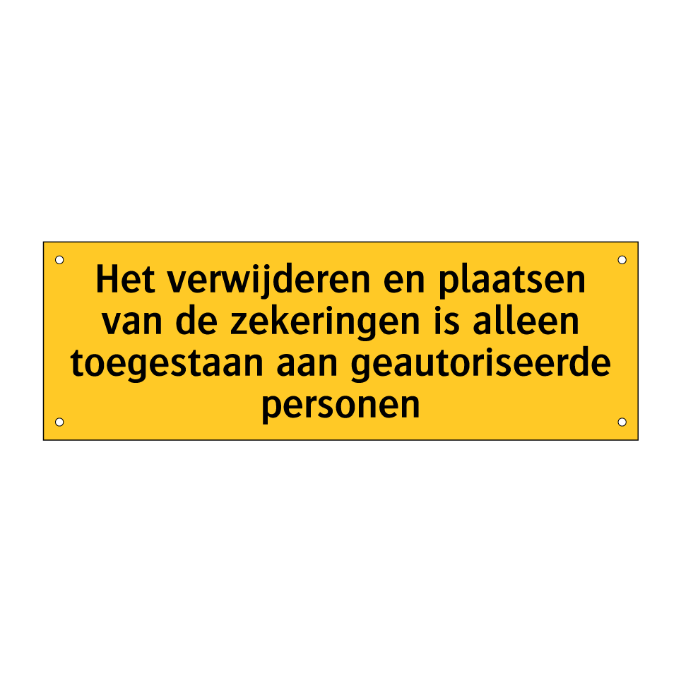 Waarschuwingsbord met de tekst Het verwijderen en plaatsen van de zekeringen is alleen toegestaan aan geautoriseerde personen