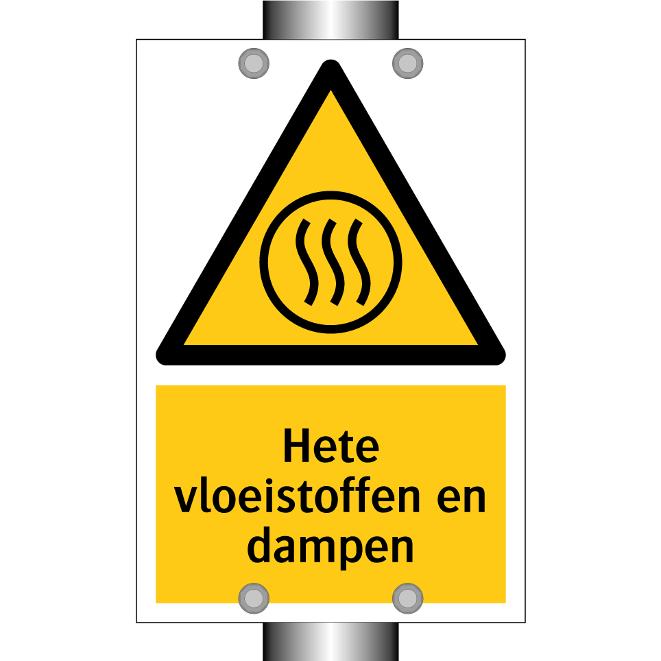 Waarschuwingsbord met de tekst Hete vloeistoffen en dampen