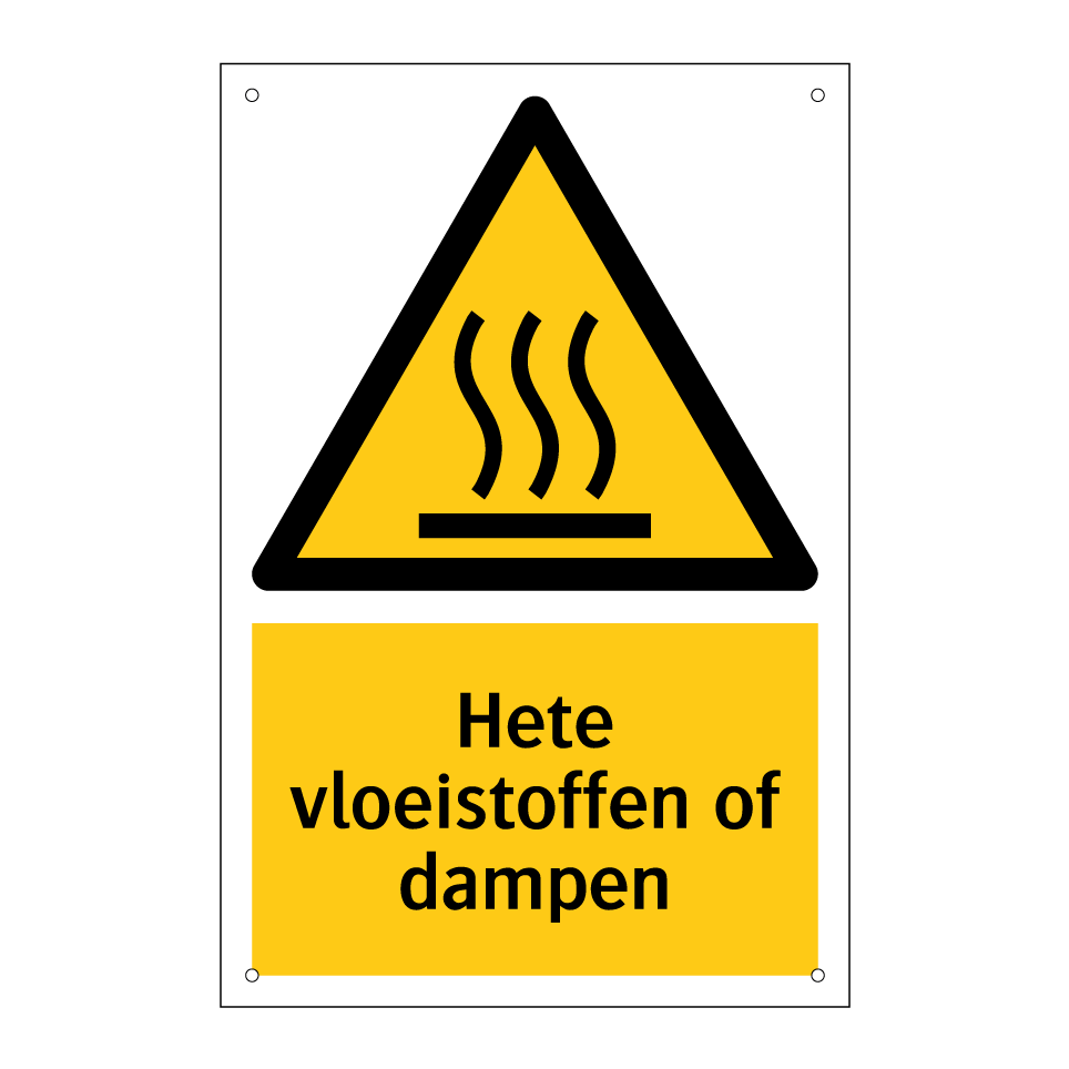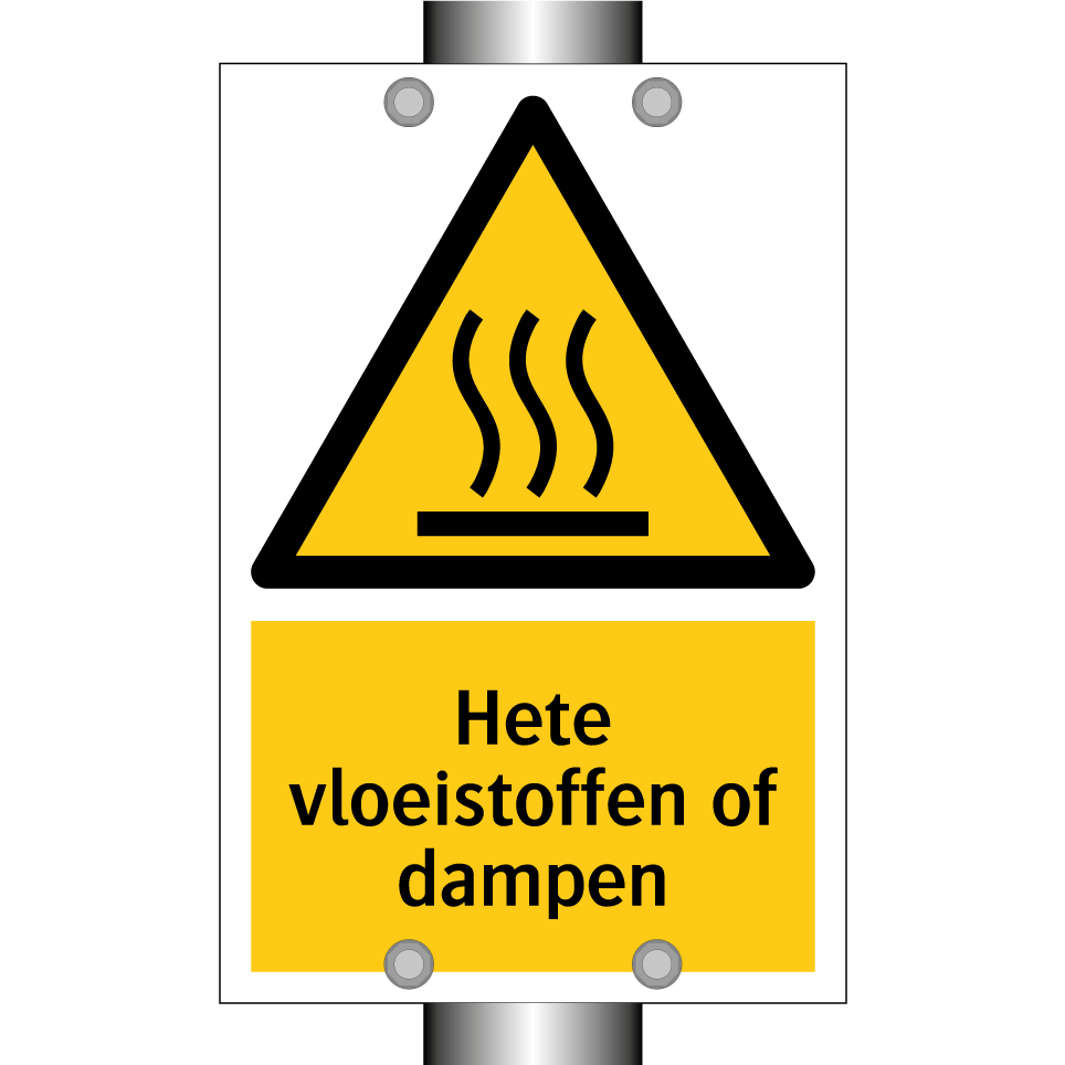 Waarschuwingsbord met de tekst Hete vloeistoffen of dampen