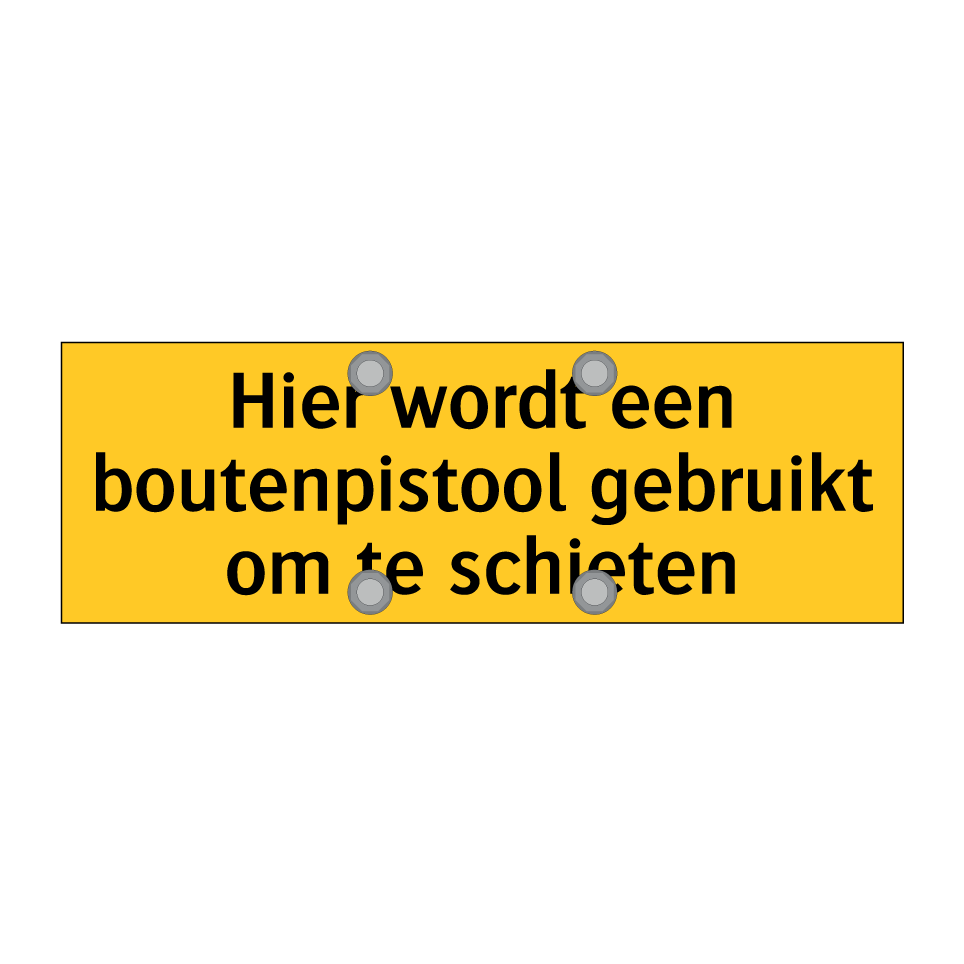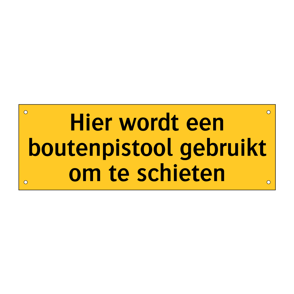 Waarschuwingsbord met de tekst Hier wordt een boutenpistool gebruikt om te schieten