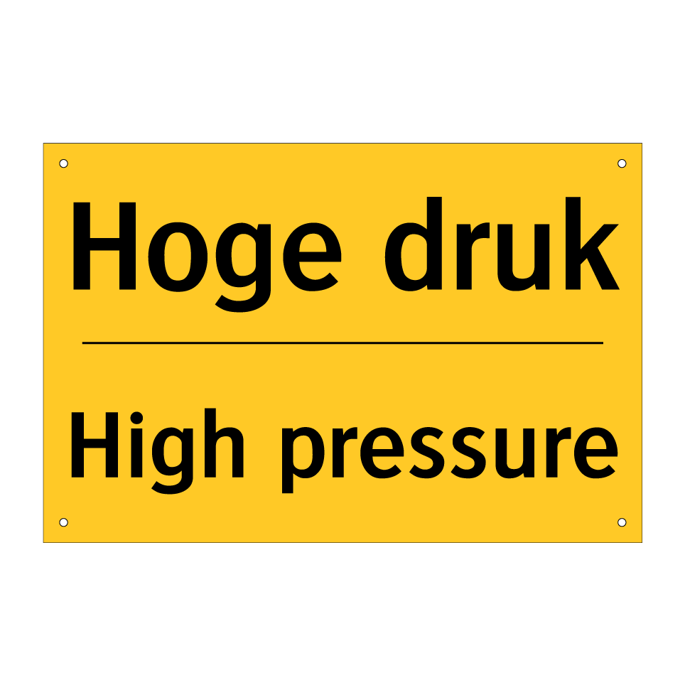 Waarschuwingsbord met de tekst Hoge druk / High pressure