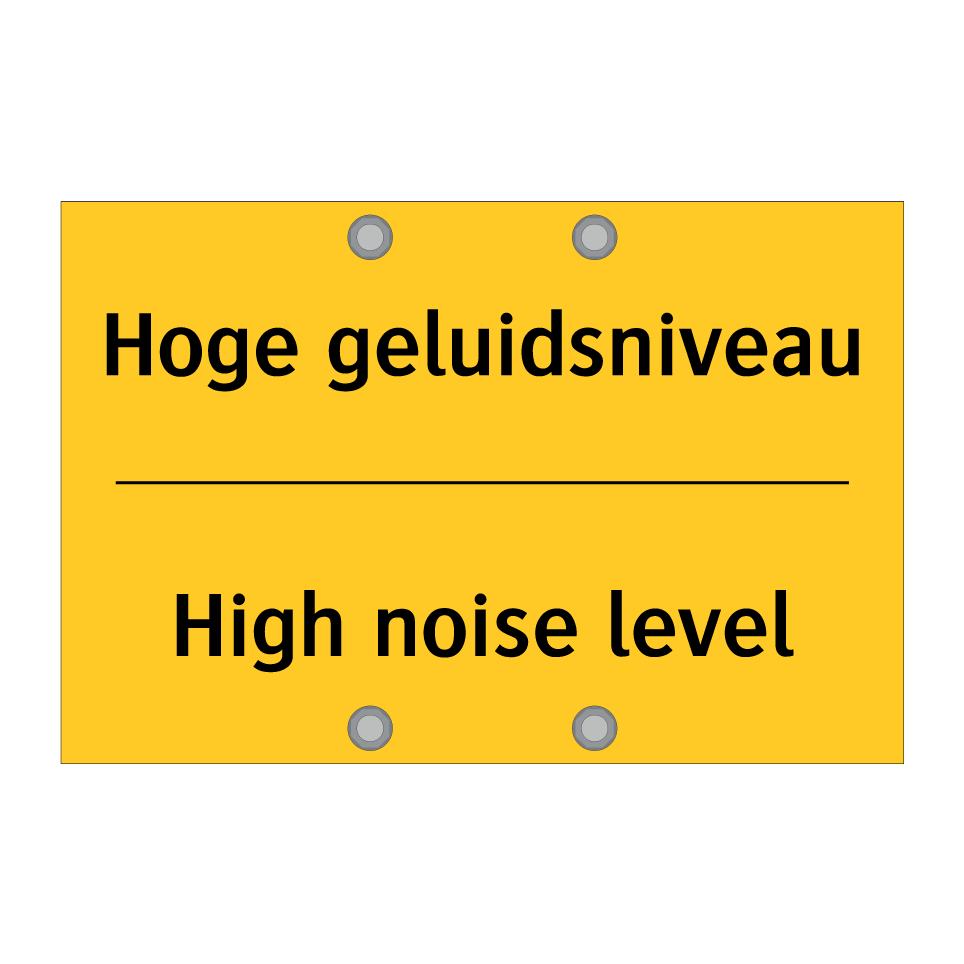 Waarschuwingsbord met de tekst Hoge geluidsniveau / High noise level