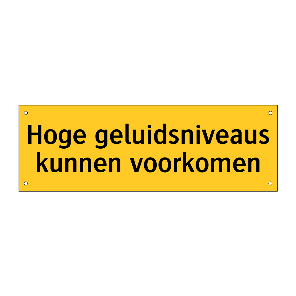 Waarschuwingsbord met de tekst Hoge geluidsniveaus kunnen voorkomen
