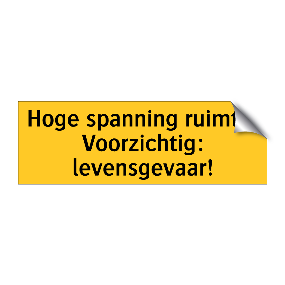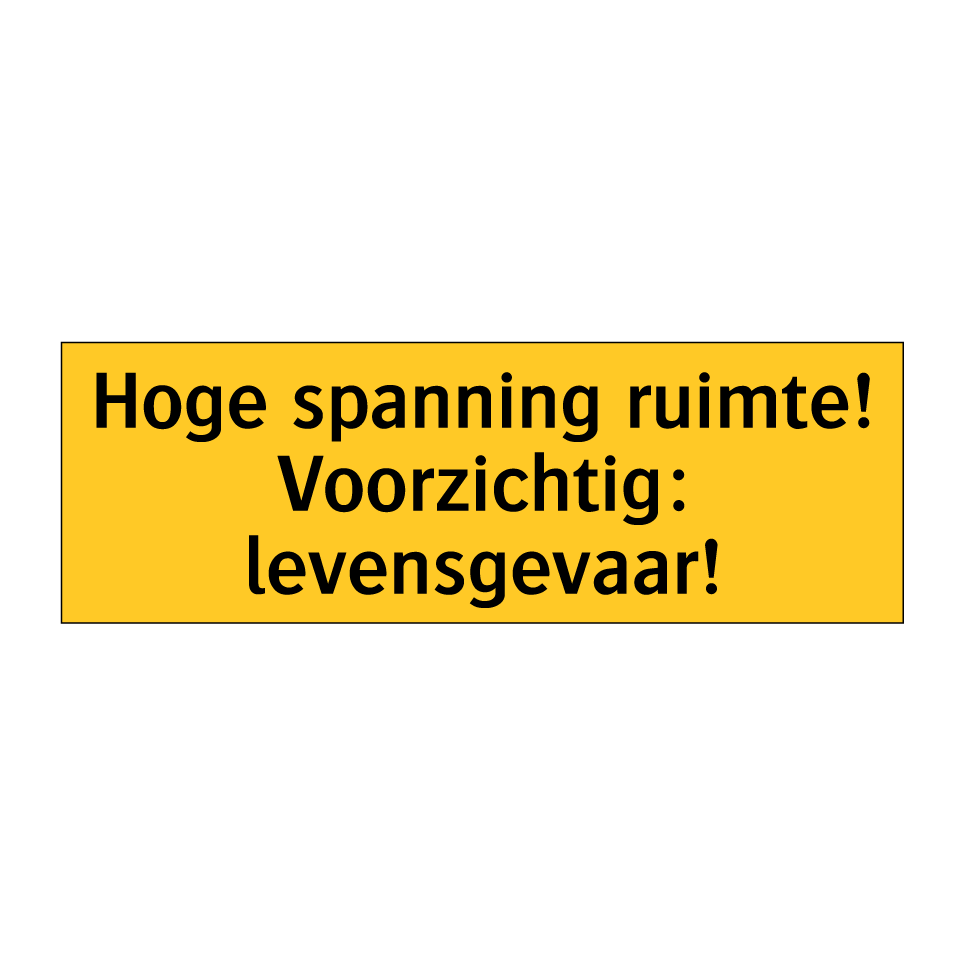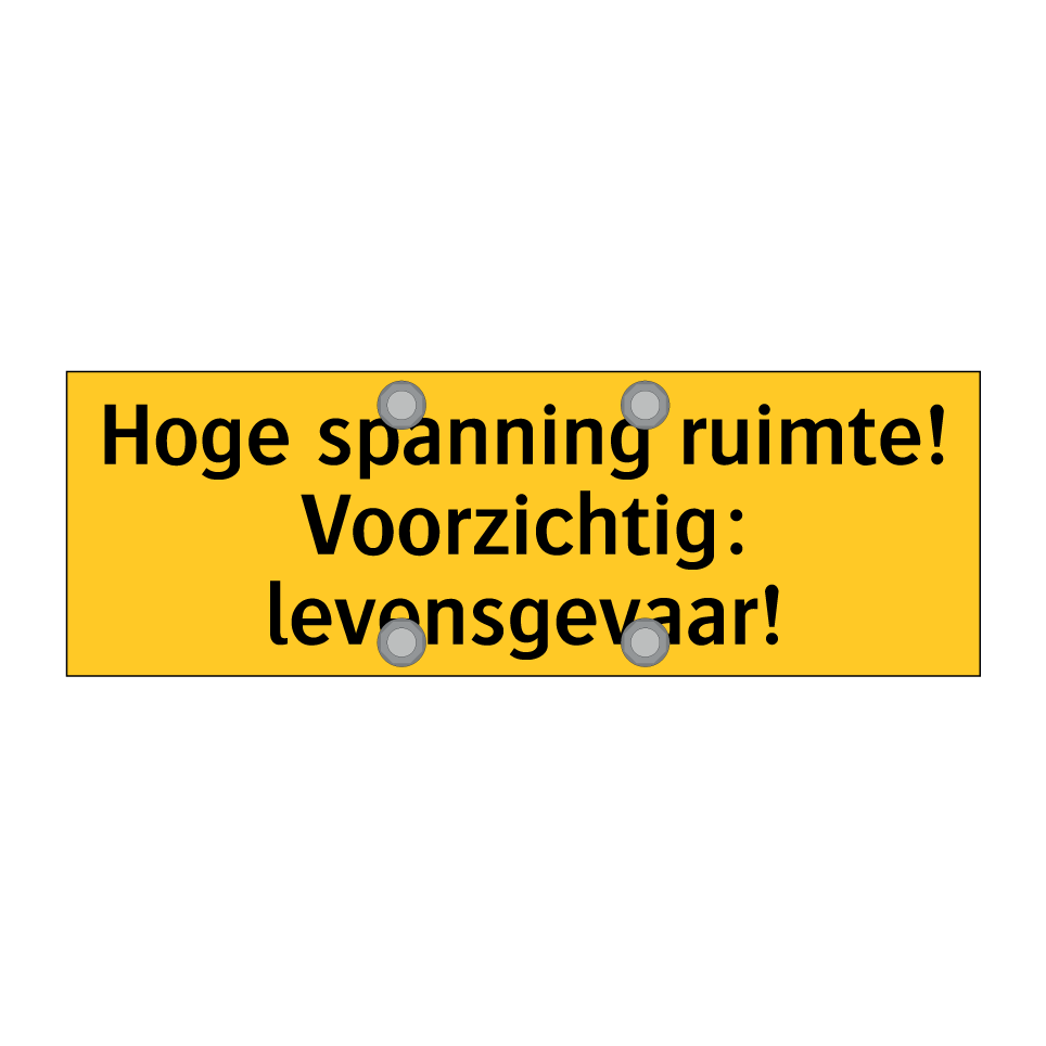 Waarschuwingsbord met de tekst Hoge spanning ruimte! Voorzichtig: levensgevaar!