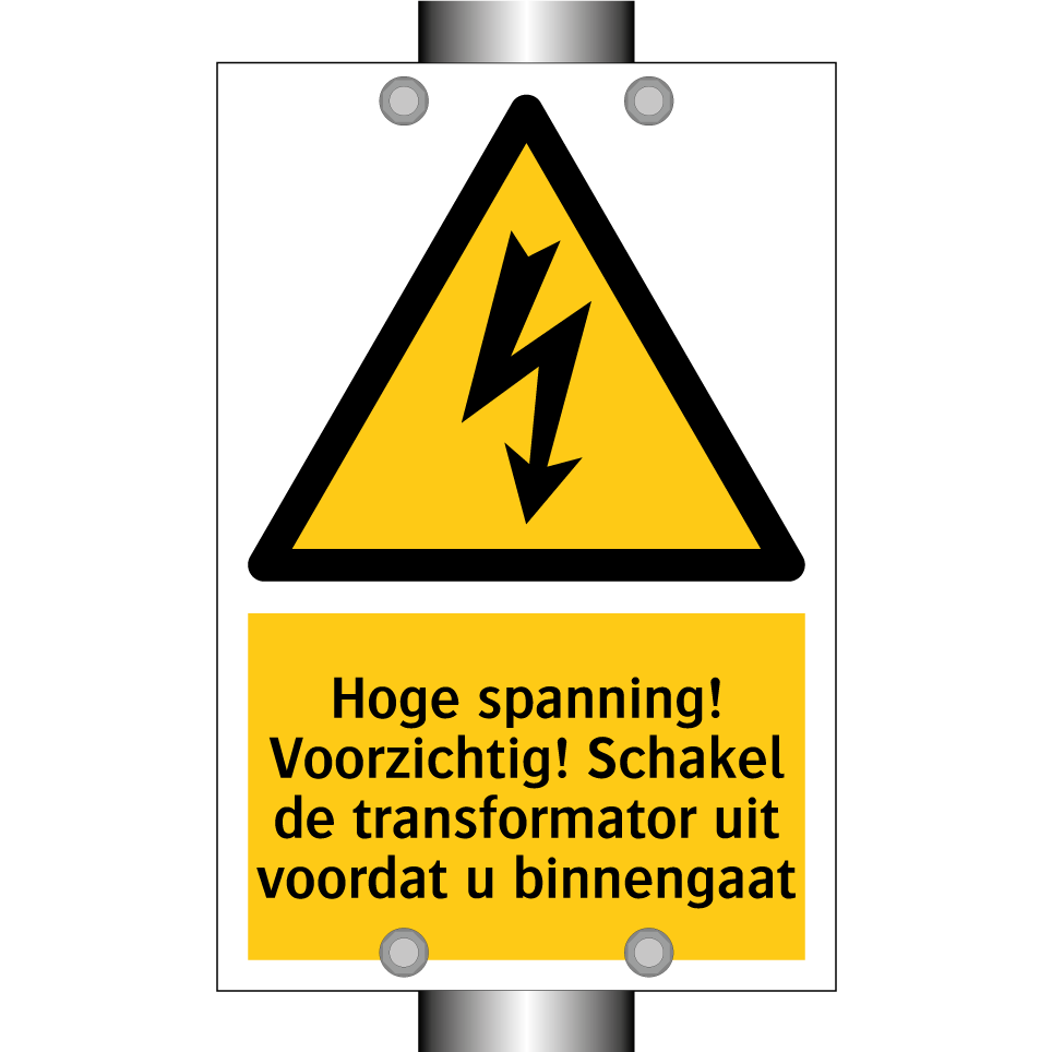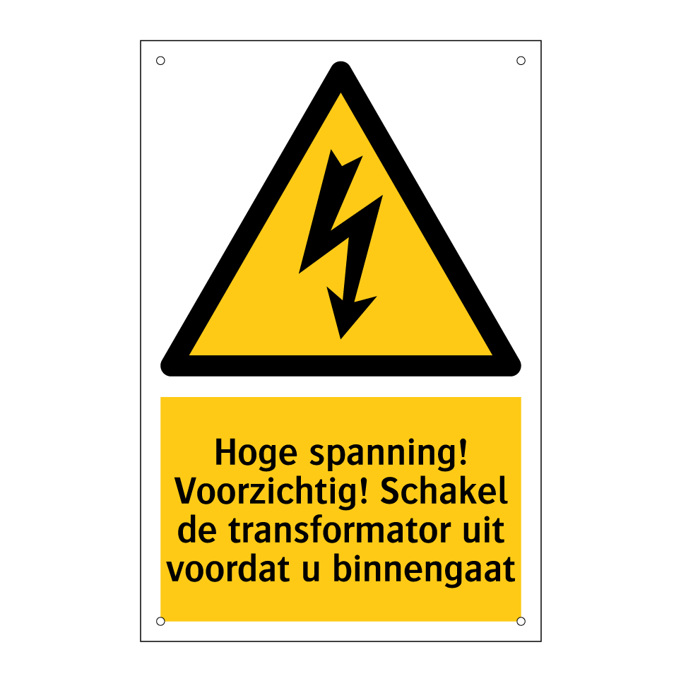 Deze waarschuwingsbord is essentieel voor het waarborgen van de veiligheid in omgevingen met hoge spanning. Plaats deze bord bij transformatorruimtes, elektrische kasten of andere gebieden waar hoge spanning aanwezig is. Het waarschuwt personeel en bezoekers om voorzichtig te zijn en de transformator uit te schakelen voordat ze de ruimte betreden. Dit waarschuwingsbord helpt ongelukken te voorkomen en zorgt voor een veilige werkomgeving. Ideaal voor gebruik in industriële omgevingen, fabrieken en technische ruimtes. Zorg ervoor dat iedereen op de hoogte is van de potentiële gevaren door deze duidelijke en opvallende waarschuwingsbord te plaatsen.
