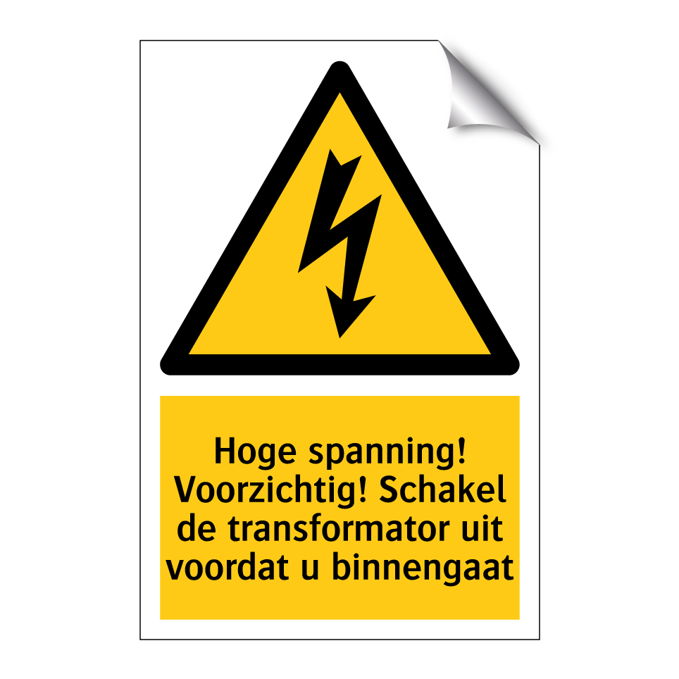 Hoge spanning! Voorzichtig! Schakel de transformator uit voordat u binnengaat