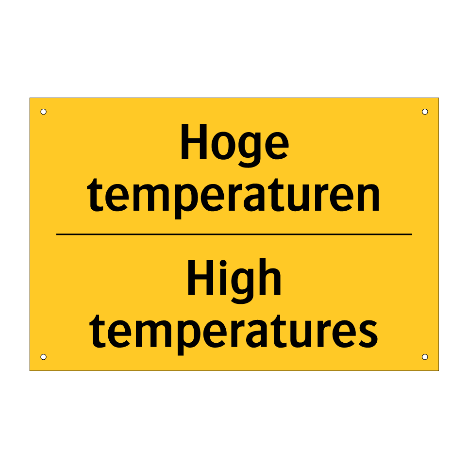 Waarschuwingsbord met de tekst Hoge temperaturen / High temperatures