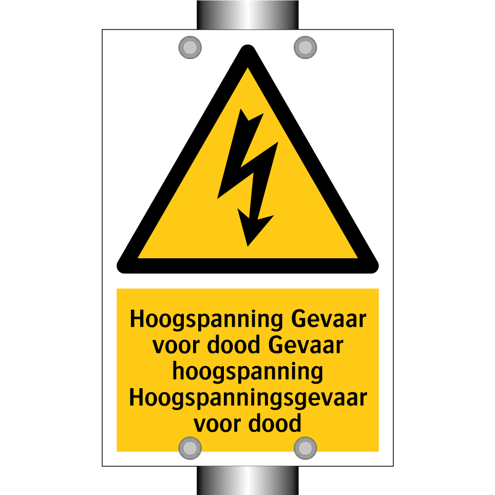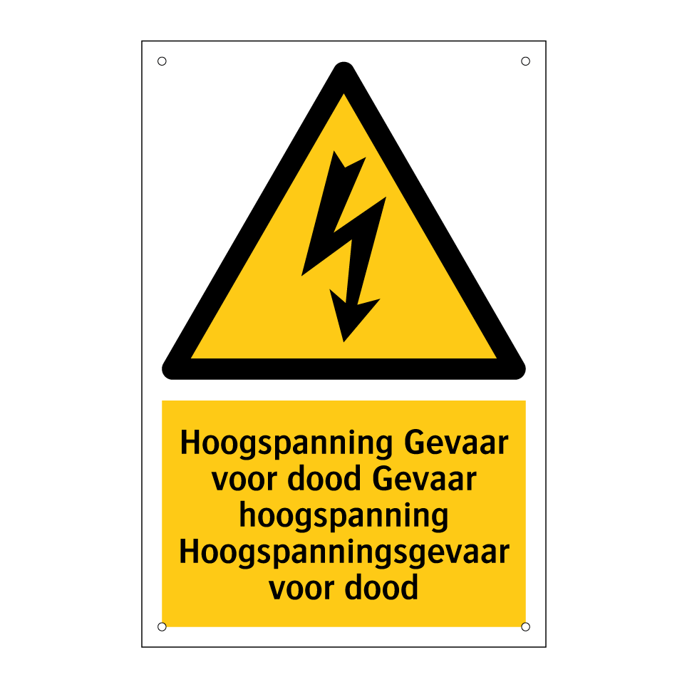 Waarschuwingsbord met de tekst Hoogspanning Gevaar voor dood Gevaar hoogspanning Hoogspanningsgevaar voor dood