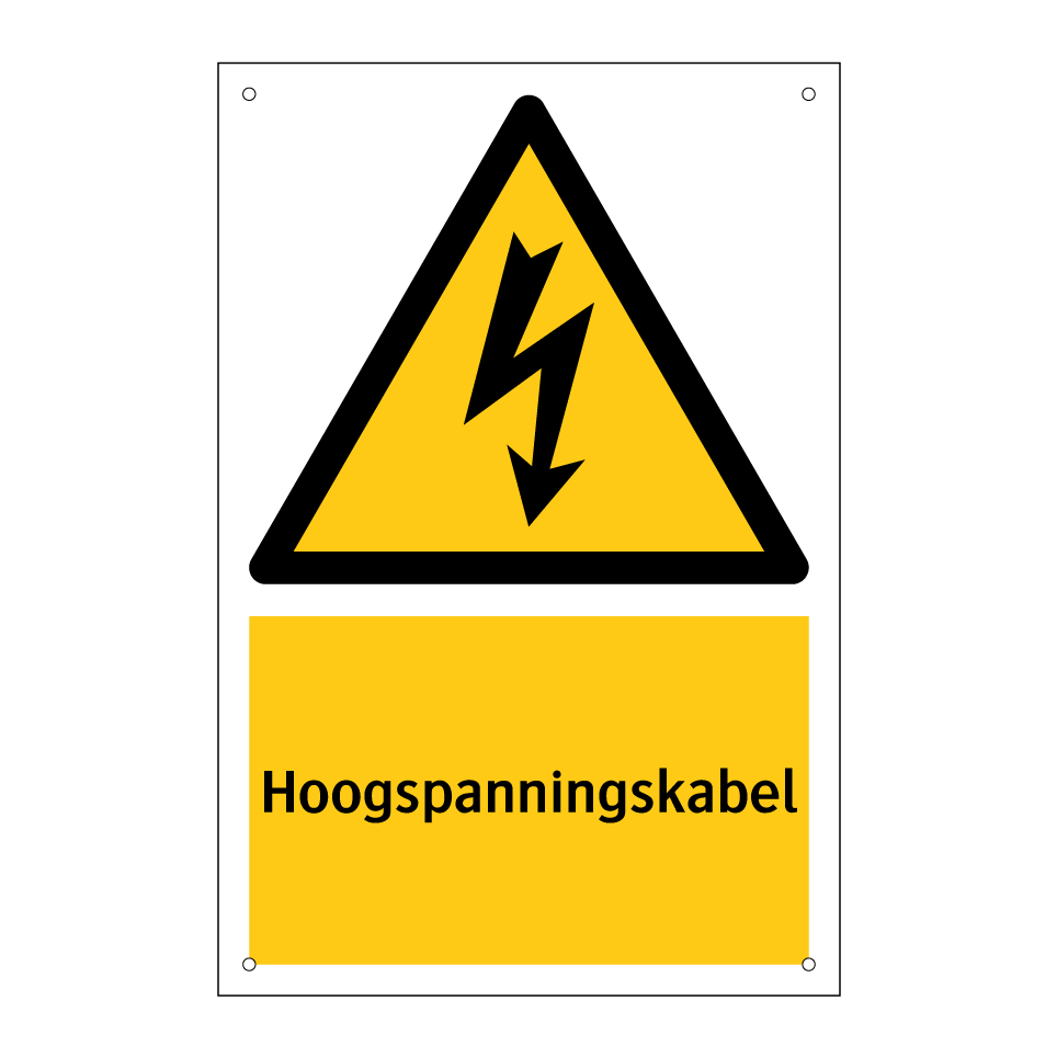 Waarschuwingsbord met de tekst Hoogspanningskabel