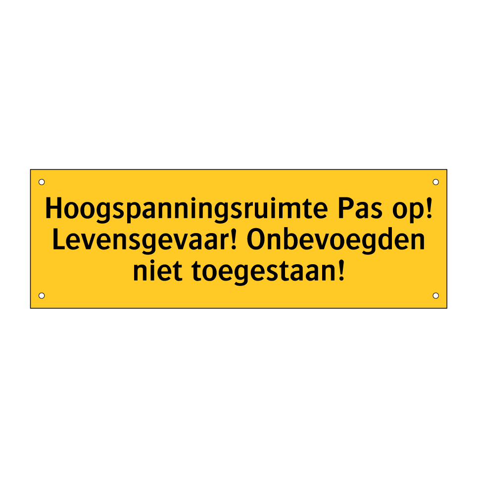 Deze waarschuwingsbord is essentieel voor het markeren van hoogspanningsruimtes en het waarschuwen voor levensgevaar. Plaats deze bord op toegangsdeuren, hekken of muren van elektrische installaties om onbevoegden te waarschuwen en toegang te voorkomen. Ideaal voor gebruik in industriële omgevingen, energiecentrales en technische ruimtes waar hoge spanning aanwezig is. De opvallende gele achtergrond met zwarte tekst zorgt ervoor dat de waarschuwing direct opvalt en serieus wordt genomen. Bescherm uw personeel en bezoekers door duidelijk te communiceren dat toegang strikt verboden is voor onbevoegden. Veiligheid eerst met deze duidelijke en effectieve waarschuwingsbord.