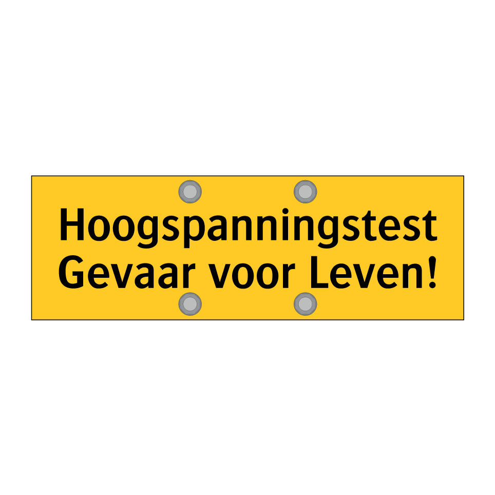 Waarschuwingsbord met de tekst Hoogspanningstest Gevaar voor Leven!