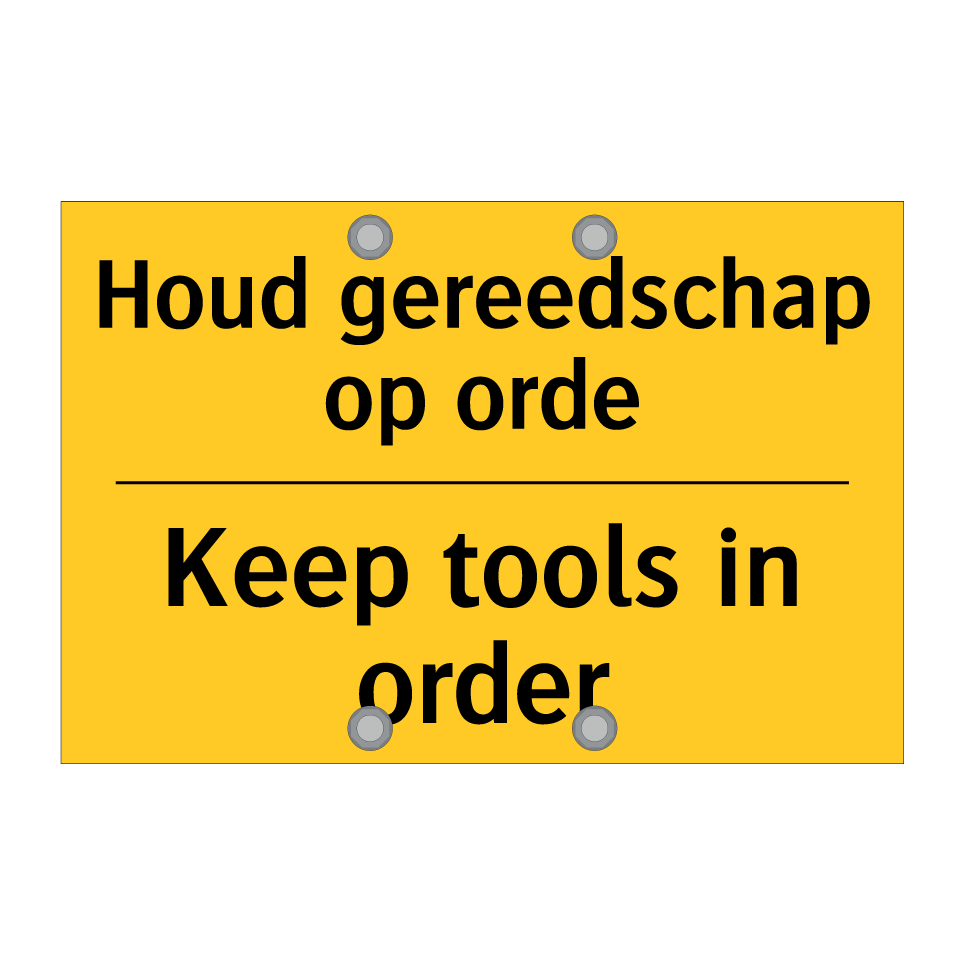 Waarschuwingsbord met de tekst Houd gereedschap op orde / Keep tools in order