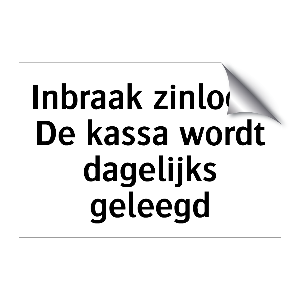 Verbodsbord met de tekst Inbraak zinloos: De kassa wordt dagelijks geleegd