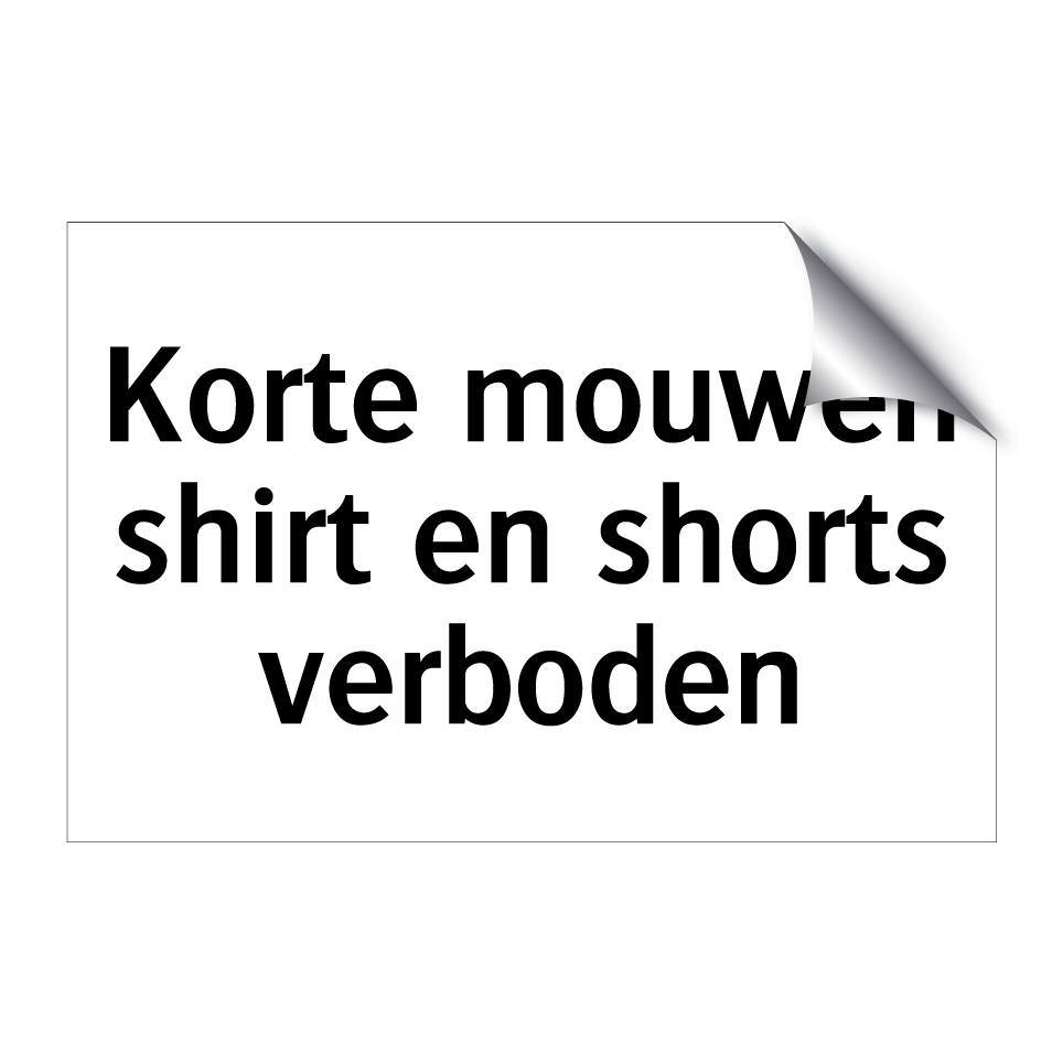 Verbodsbord met de tekst Korte mouwen shirt en shorts verboden