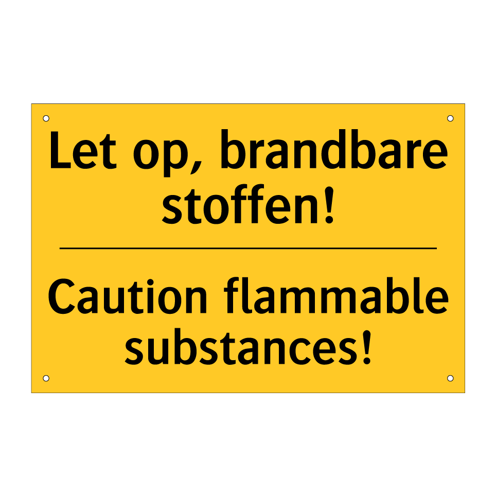 Waarschuwingsbord met de tekst Let op, brandbare stoffen! / Caution flammable substances!