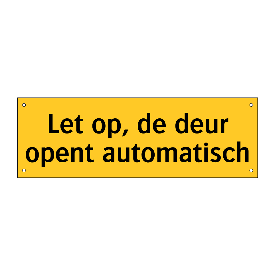 Waarschuwingsbord met de tekst Let op, de deur opent automatisch