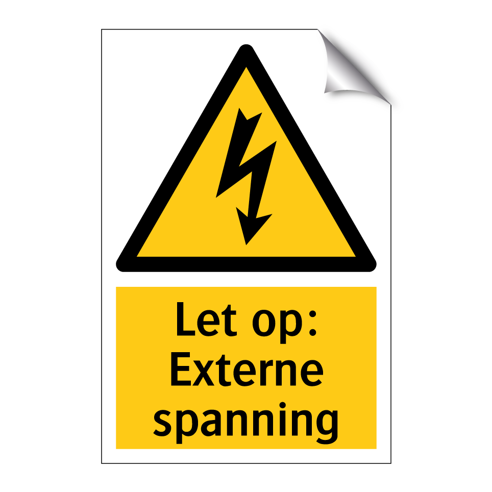 Waarschuwingsbord met de tekst Let op: Externe spanning