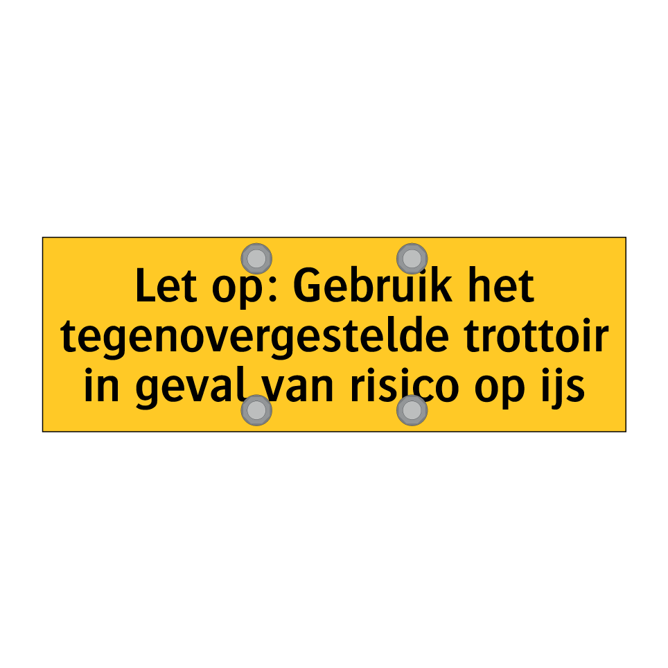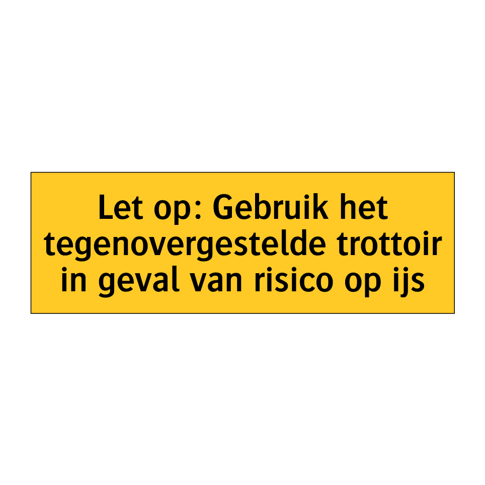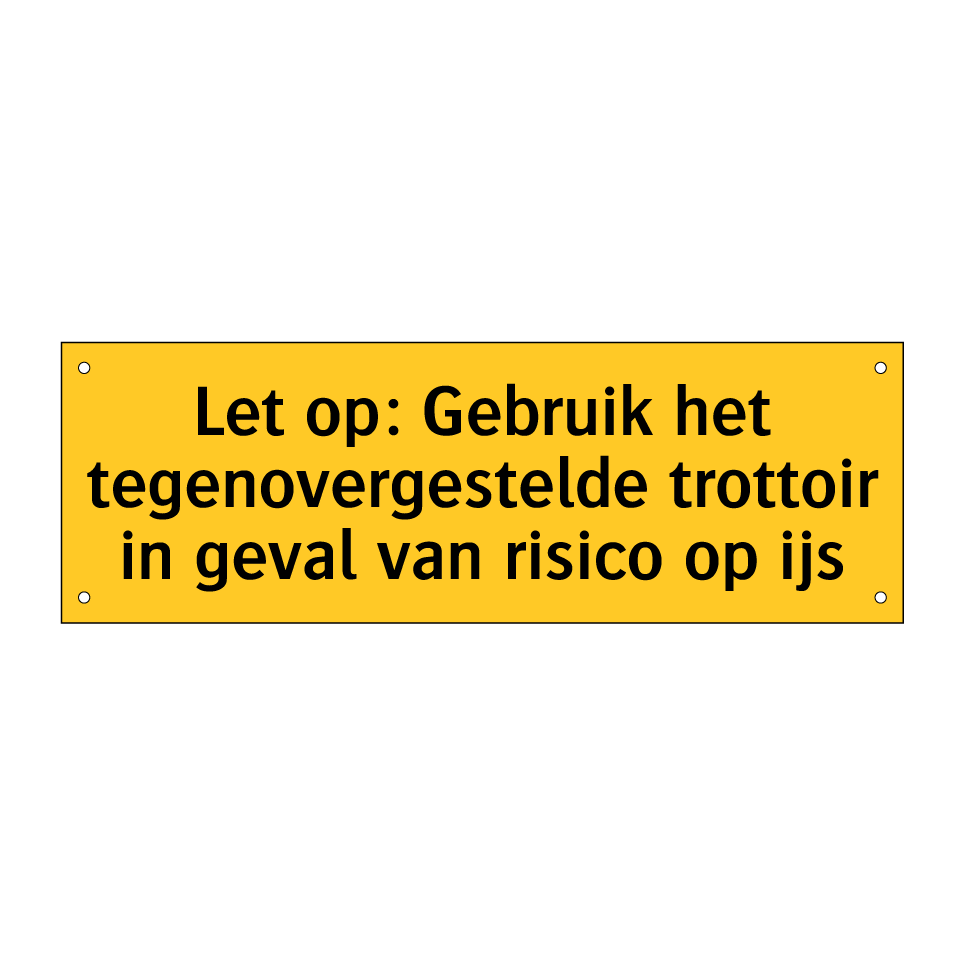 Waarschuwingsbord met de tekst Let op: Gebruik het tegenovergestelde trottoir in geval van risico op ijs