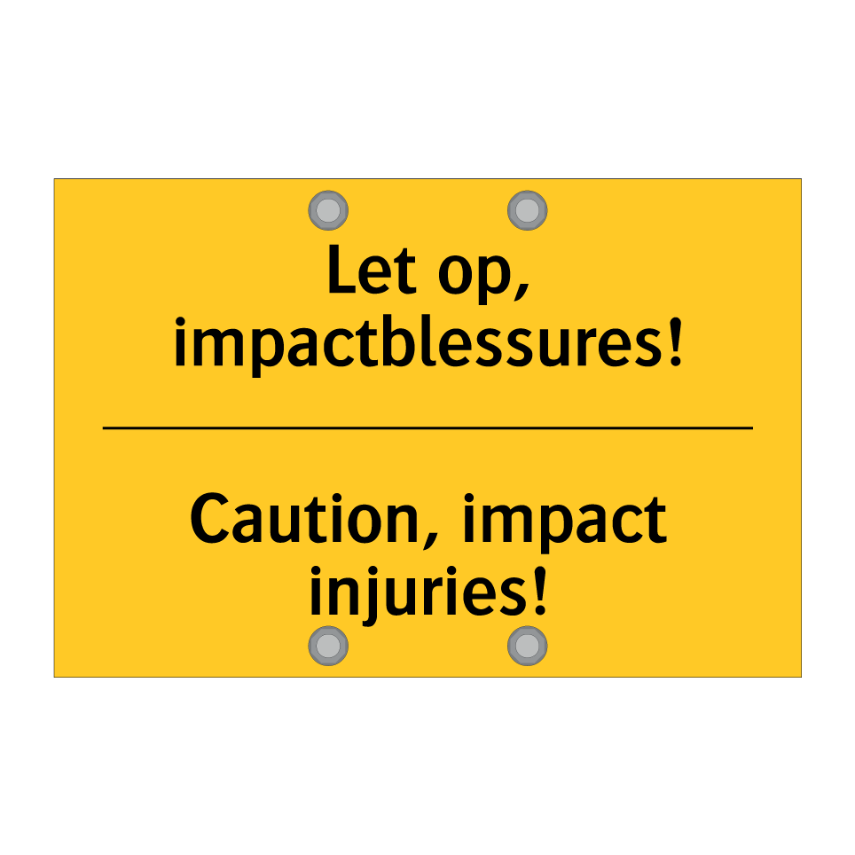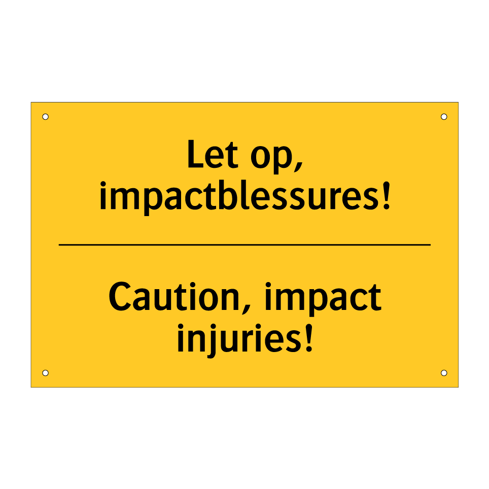 Waarschuwingsbord met de tekst Let op, impactblessures! / Caution, impact injuries!