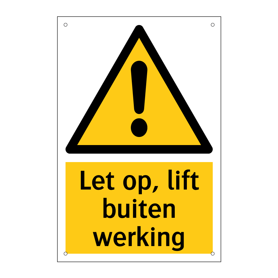 Waarschuwingsbord met de tekst Let op, lift buiten werking