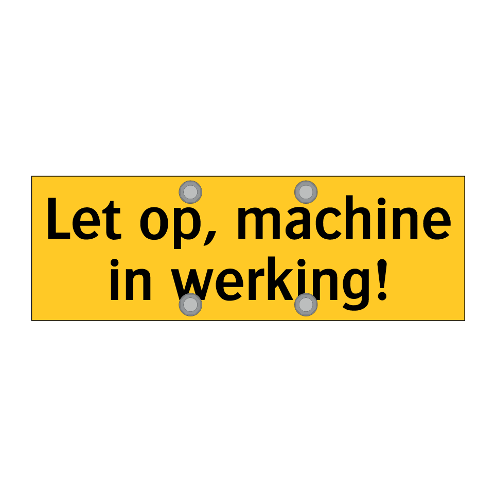 Deze waarschuwingsbord is essentieel voor elke omgeving waar machines in werking zijn. Plaats deze bord op zichtbare locaties zoals fabrieken, werkplaatsen, en industriële zones om personeel en bezoekers te waarschuwen voor actieve machines. Het heldere gele achtergrond en de zwarte tekst zorgen ervoor dat de waarschuwing direct opvalt, wat bijdraagt aan de veiligheid op de werkvloer. Door deze waarschuwingsbord strategisch te plaatsen, kunt u ongelukken voorkomen en een veilige werkomgeving bevorderen. Ideaal voor gebruik in productiehallen, magazijnen en andere industriële omgevingen waar machines operationeel zijn.