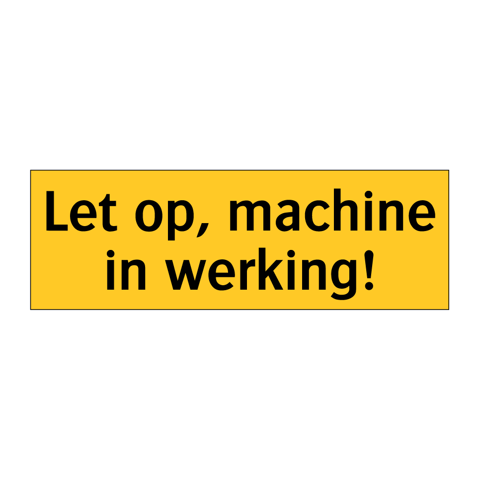 Waarschuwingsbord met de tekst Let op, machine in werking!
