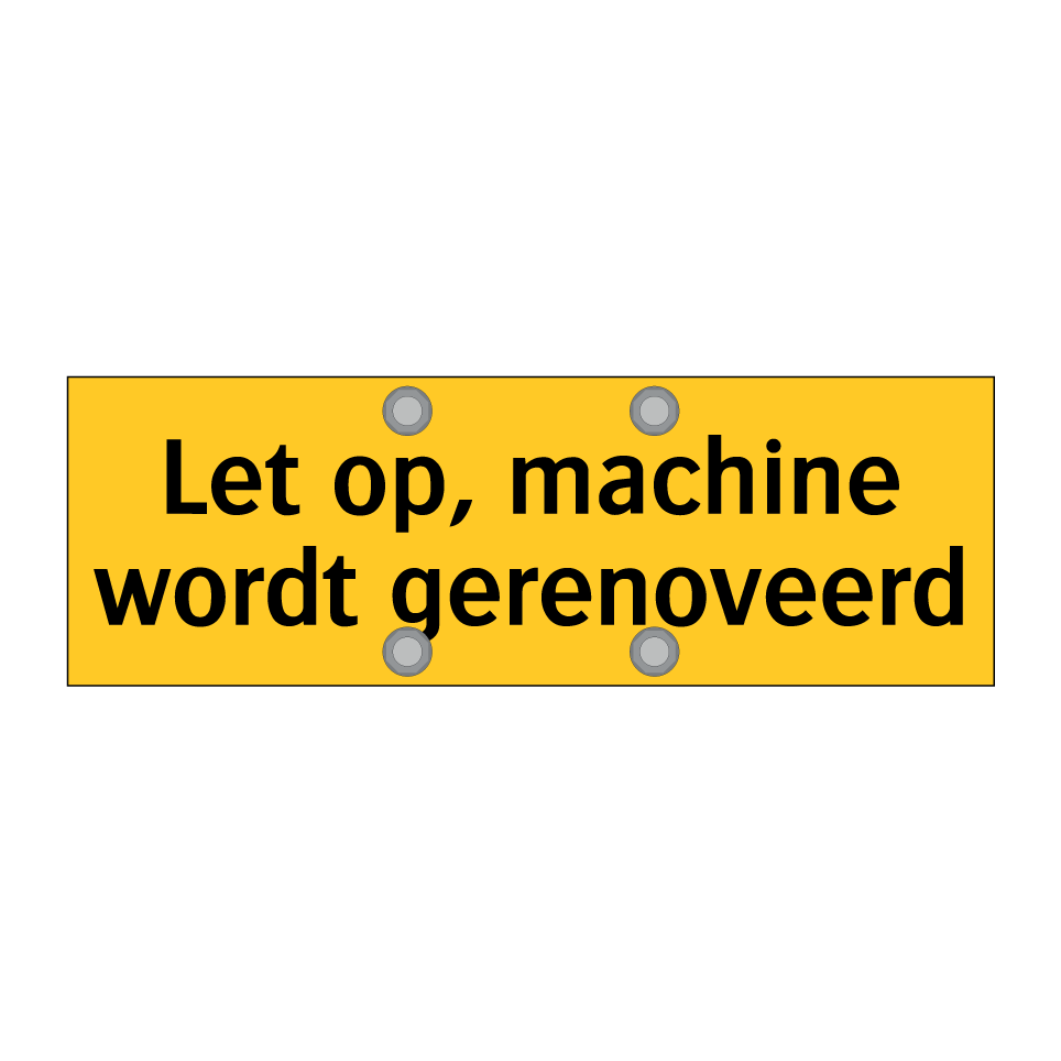 Waarschuwingsbord met de tekst Let op, machine wordt gerenoveerd