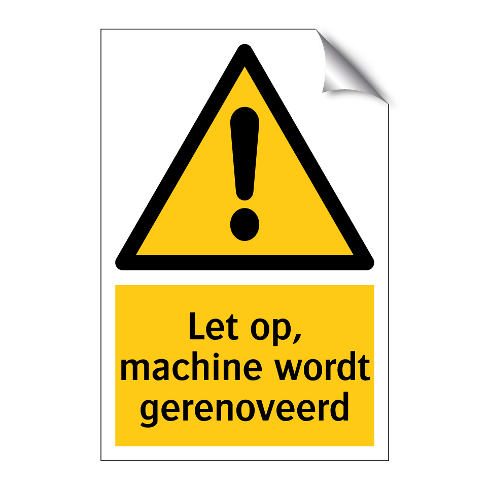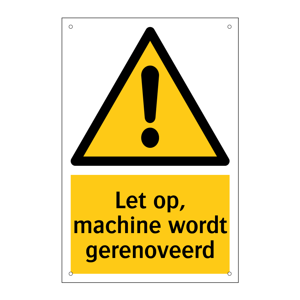 Waarschuwingsbord met de tekst Let op, machine wordt gerenoveerd