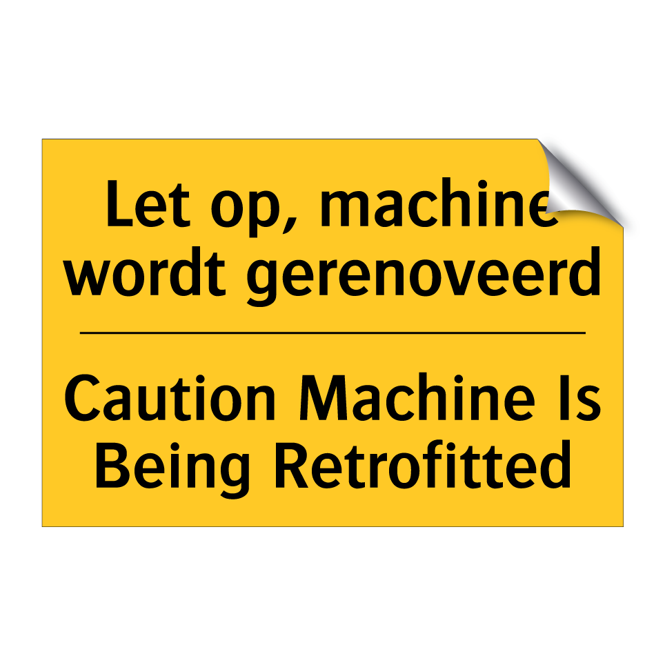 Waarschuwingsbord met de tekst Let op, machine wordt gerenoveerd / Caution Machine Is Being Retrofitted