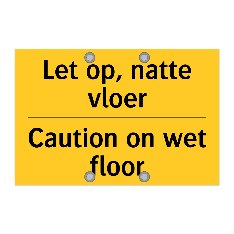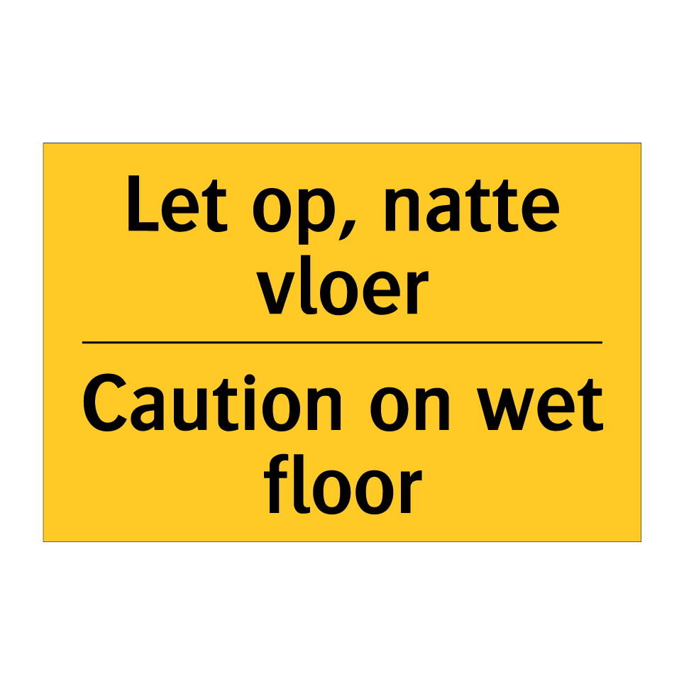 Deze opvallende waarschuwingsbord met gele achtergrond en zwarte tekst is ideaal voor het signaleren van gladde vloeren. De tekst is zowel in het Nederlands als in het Engels, wat zorgt voor een bredere begrijpelijkheid en verhoogde veiligheid in internationale omgevingen. Plaats dit bordje in gebieden waar de vloer nat kan worden, zoals bij ingangen, in gangen, of nabij schoonmaakzones. Het waarschuwingsbord helpt ongelukken te voorkomen door mensen attent te maken op potentieel gevaarlijke situaties. Perfect voor gebruik in kantoren, winkels, hotels en andere openbare ruimtes waar veiligheid voorop staat.
