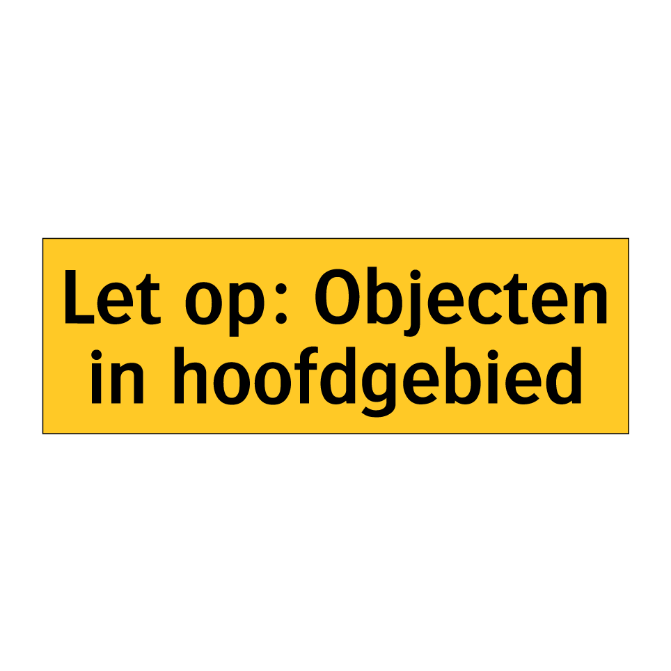 Waarschuwingsbord met de tekst Let op: Objecten in hoofdgebied