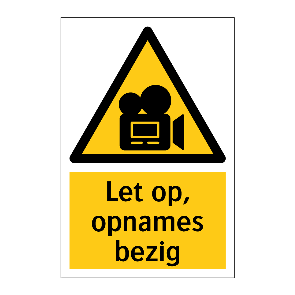 Waarschuwingsbord met de tekst Let op, opnames bezig